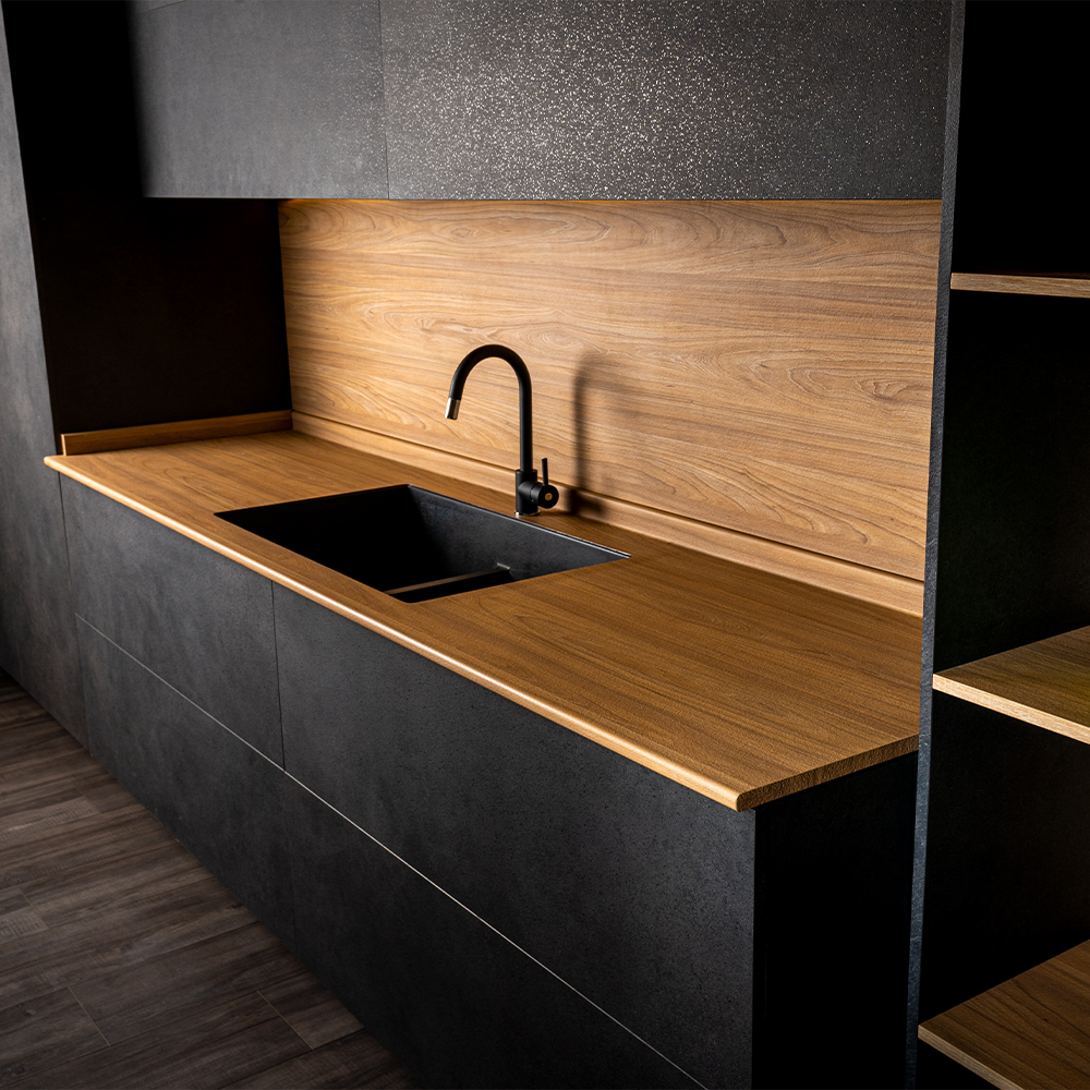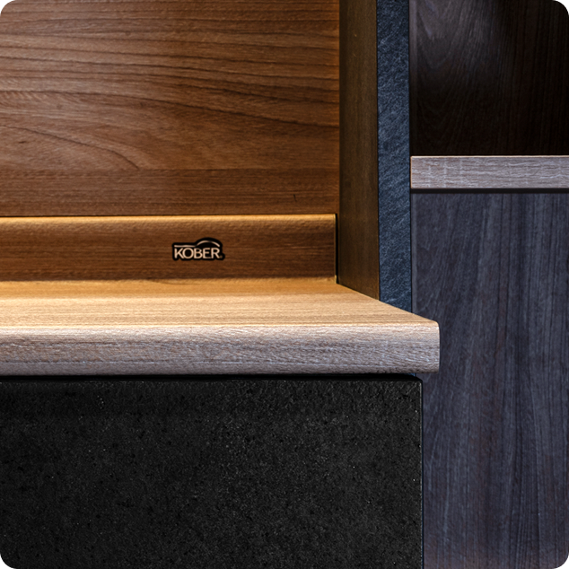 Cubierta para cocina Kober de estilo americano con respaldo integrado, línea Evolution perfil Slim, 100% impermeables evita filtraciones, libre de manchas, higiénicas, resistentes a la humedad. Bien instalada, y con ciertos cuidados como con cualquier otro tipo de cubierta puede durar en excelente estado muchos años.