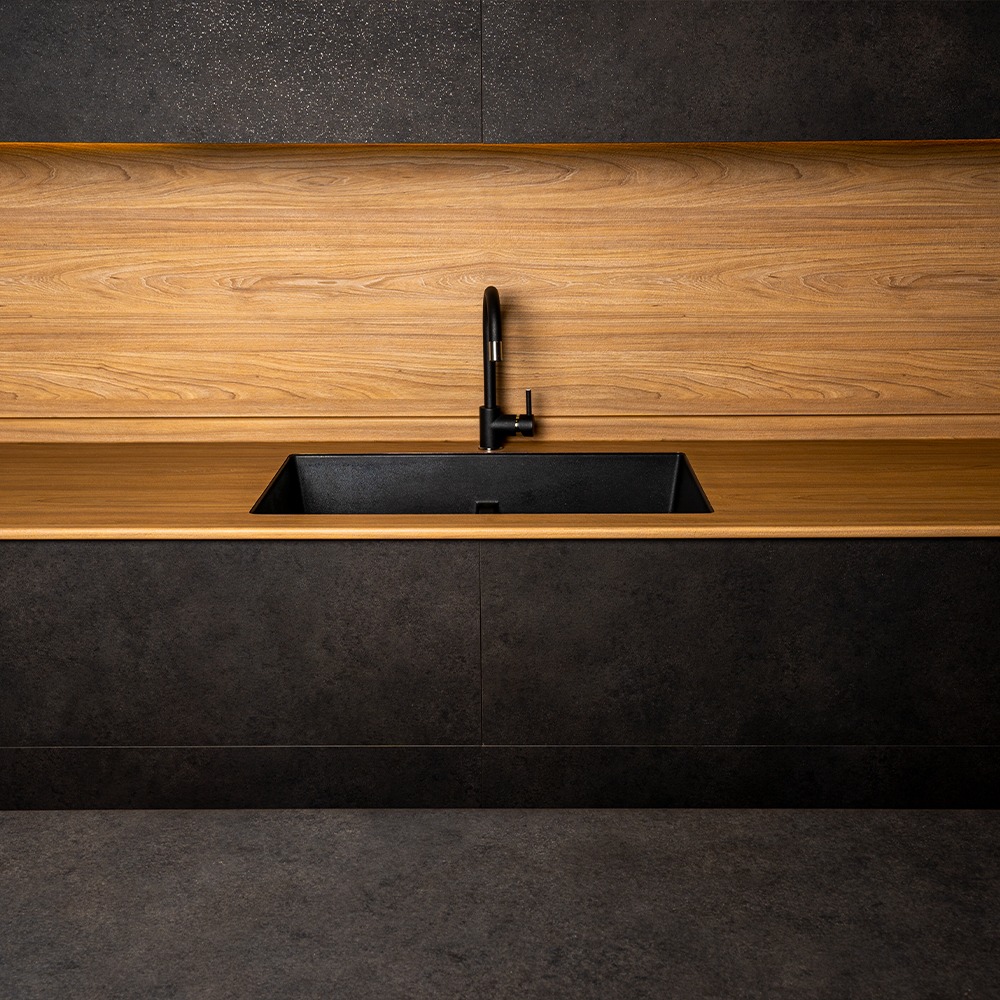 Diseño cuadrado de grosor medio, tan versátil para integrar con cualquier estilo de cocina.